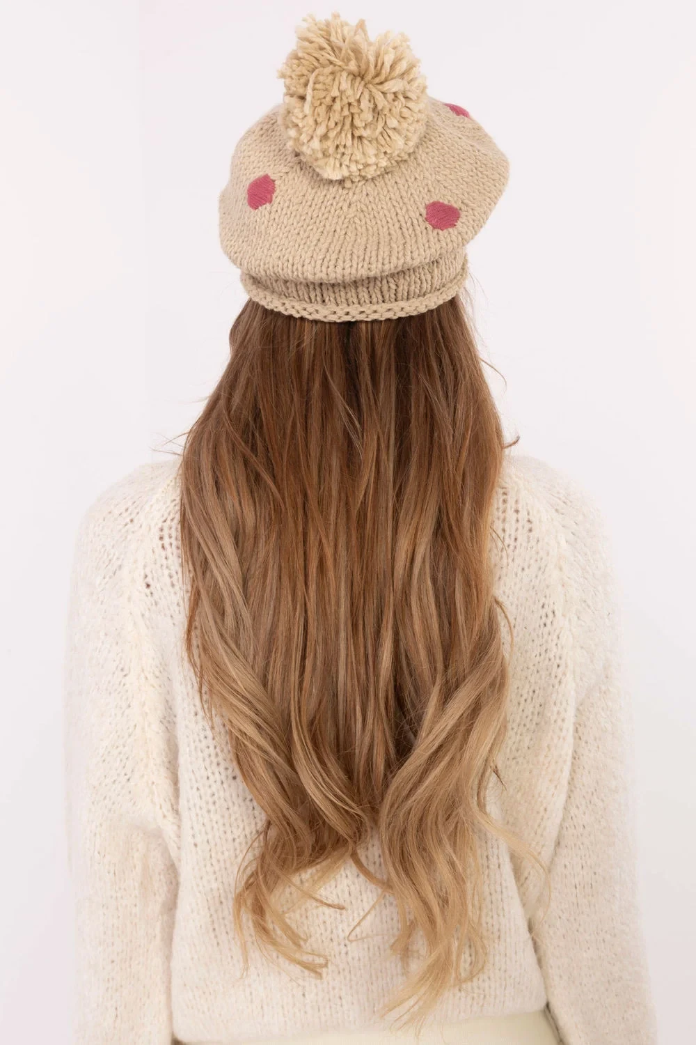 Půvabná a stylová zimní čepice, která kombinuje pohodlí a moderní vzhled. Vyrobená z měkkého, příjemného na dotek materiálu, skvěle chrání před chladem, poskytující teplo i v mrazivých dnech. Čepice se vyznačuje originálním vzorem s ozdobnými puntíky, které jí dodávají jemný půvab a moderní charakter. Na vrcholu je velký, nadýchaný bimbánek, který je módním akcentem, dodávajícím čepici lehkost a energii. Elastický lem zajistí skvělé přizpůsobení tvaru hlavy, a příjemná faktura z ní činí ideální doplněk každodenních zimních stylizací. Je to skvělá volba pro ženy, které oceňují kombinaci funkčnosti s jemným, dekorativním akcentem.
