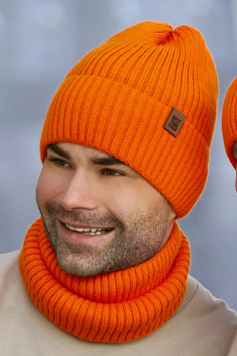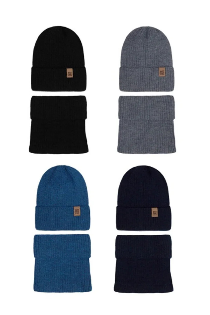 Mužský komplet: čepice s ohrnovacími šňůrkami a snood