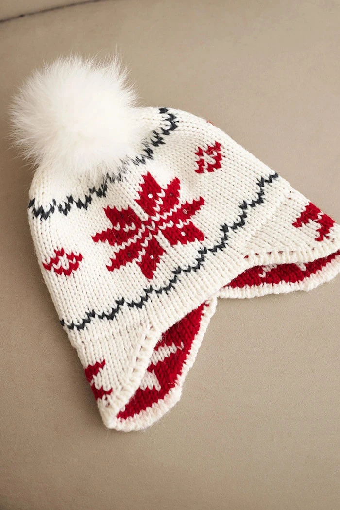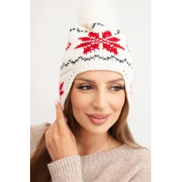 Stylová dámská čepice navržená s ohledem na zimní dny. Klasický vzor se sněhovými vločkami jí dodává sváteční kouzlo a útulný charakter. Na vrcholu je ozdobena měkkým, nadýchaným pomponem, který dodává celku lehkost a ženskou eleganci.