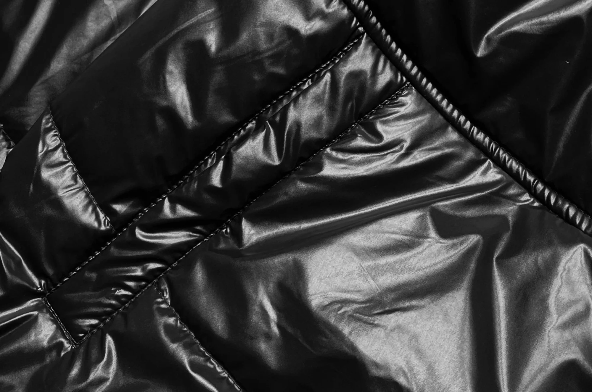 Lesklá bunda s kapucí