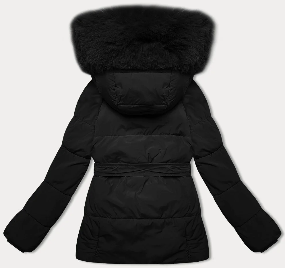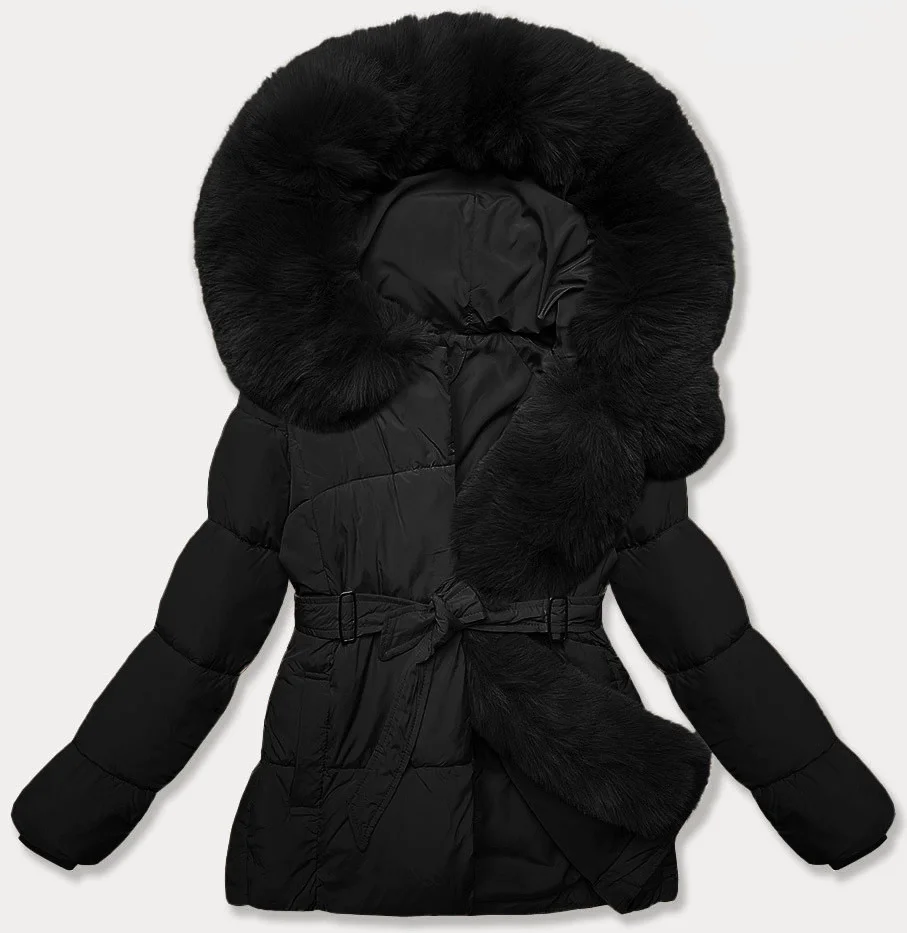 Černá bunda pro přechodné období s páskem model 21248557 - J.STYLE