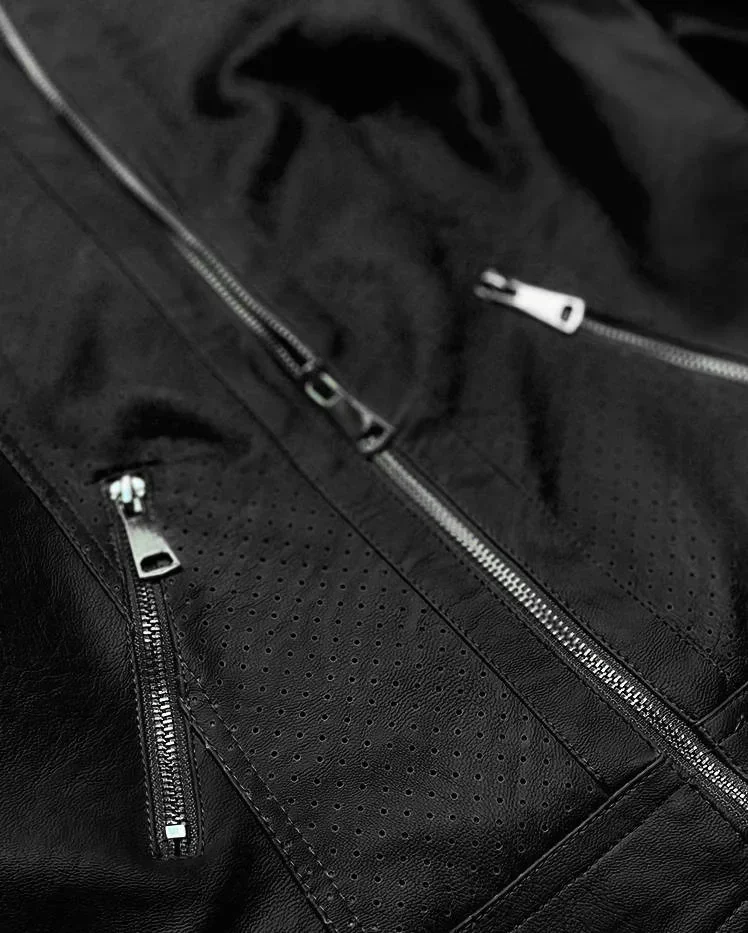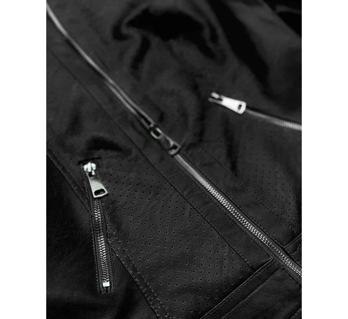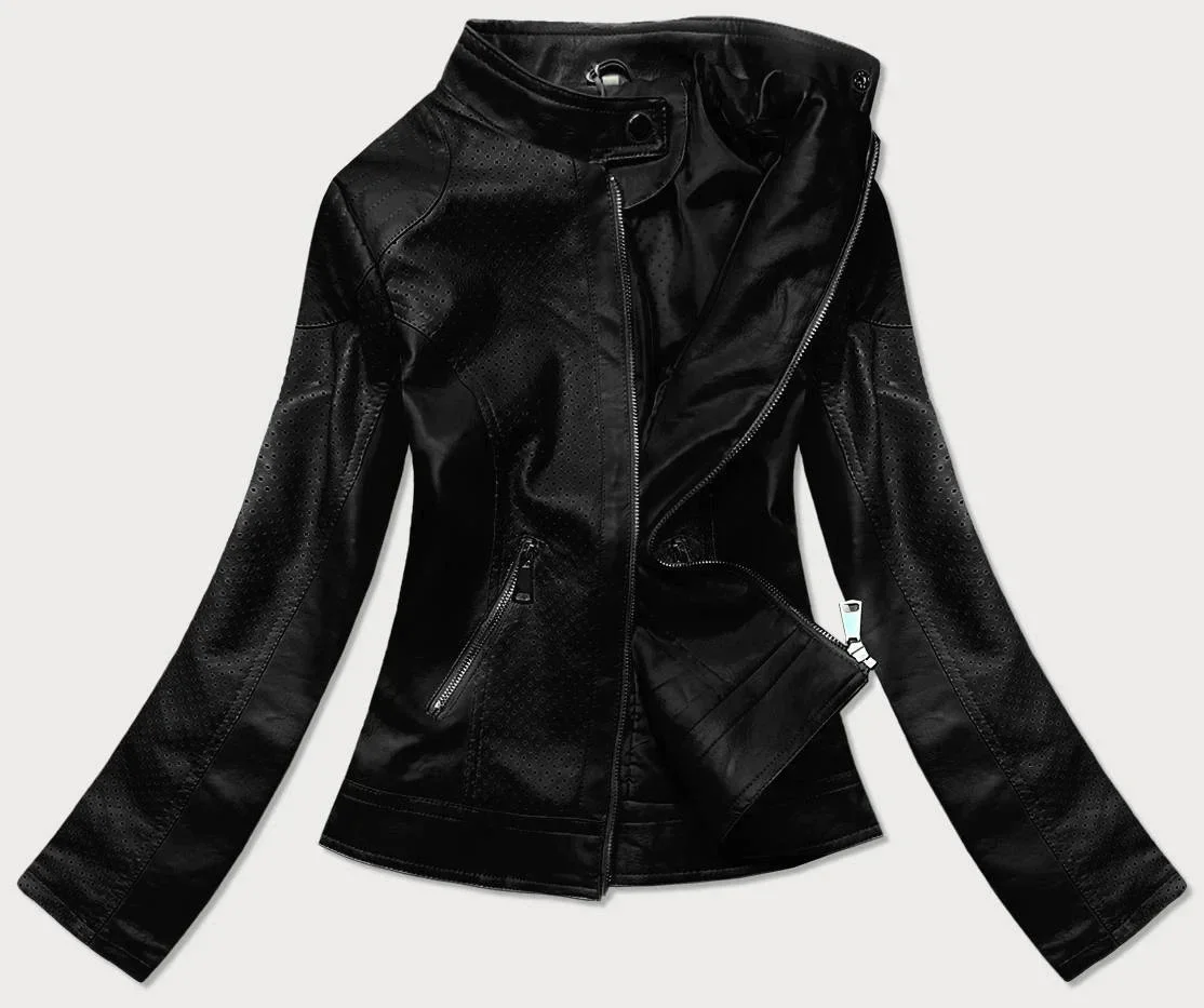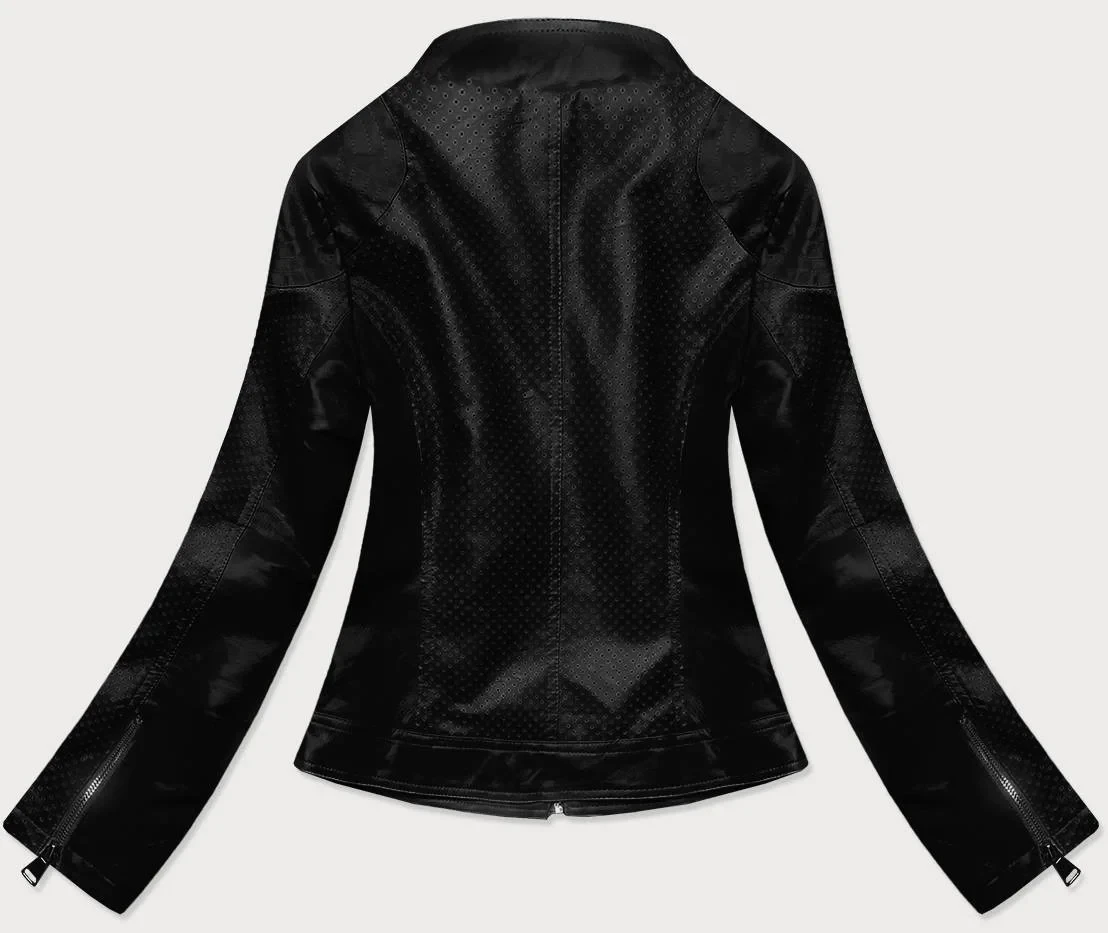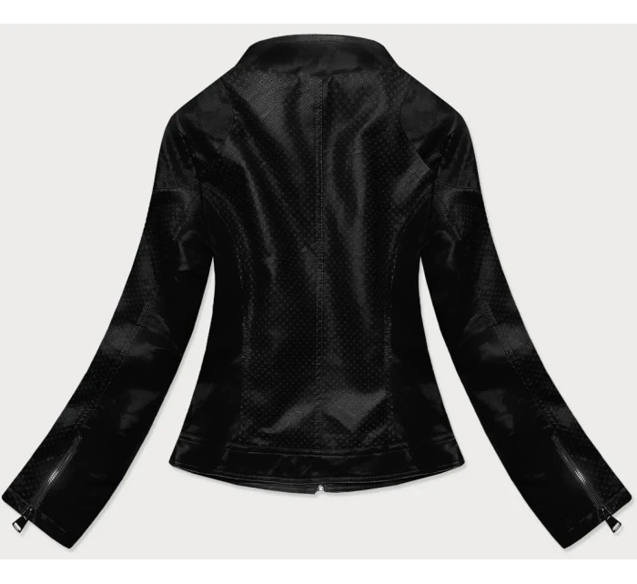 Černá bunda ramoneska z ozdobné eko kůže (G85)