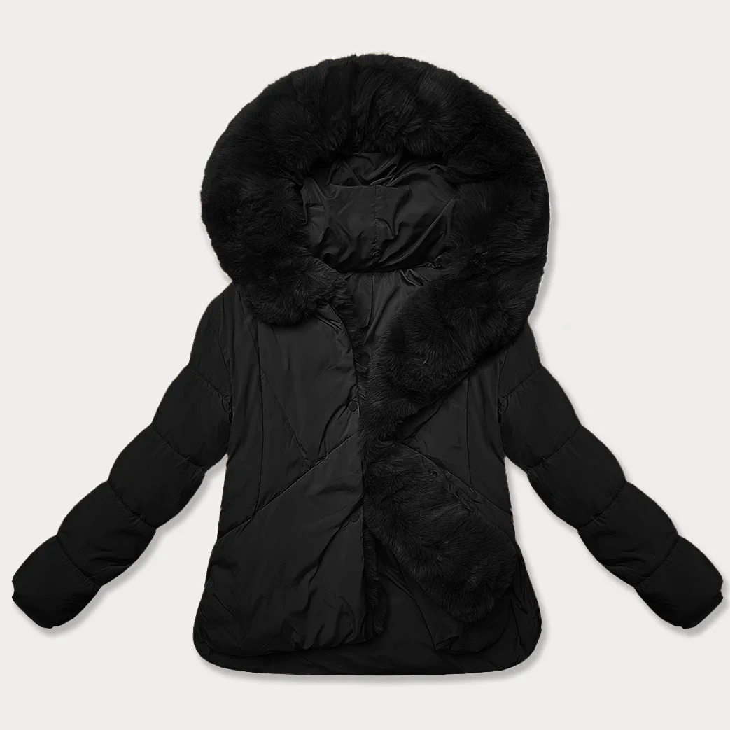 Bunda má volný střih, je lehce zateplená syntetickou péřovou výplní, má dvě kapsy bez zapínání a zapíná se patentkami. Model má kapuci, kterou není možné odepnout. Kolem kapuce a podél zipu se táhne kožešinový panel, který je možné odepnout. Na koncích rukávů jsou skryté stahovací lemy. Bunda má délku k bokům.