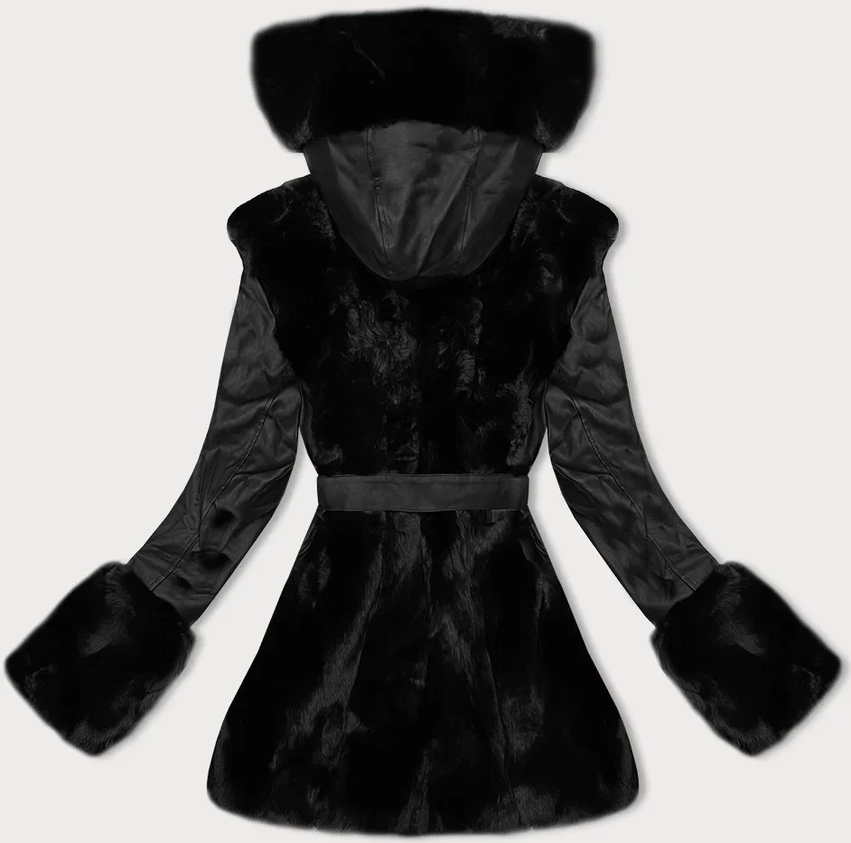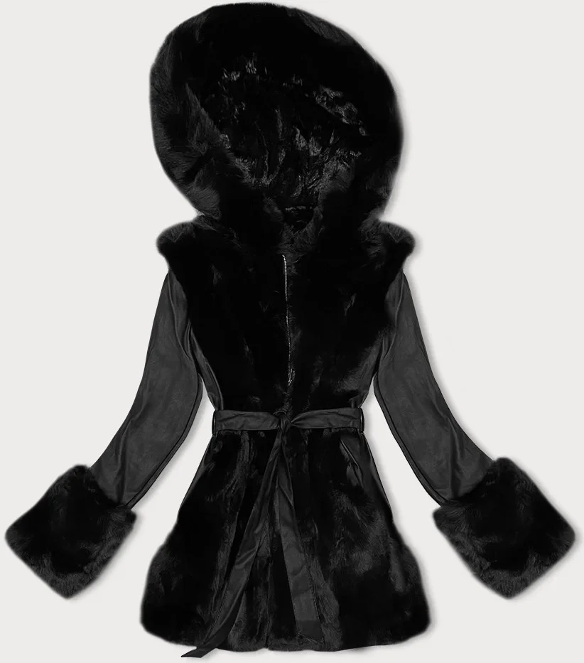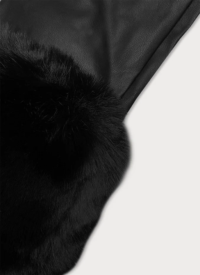 Černá bunda z eko kůže s kožešinovou podšívkou model 21247144 - J.STYLE