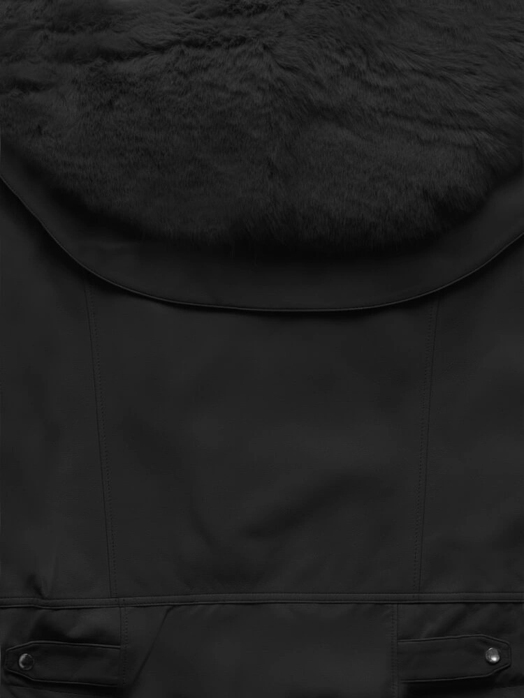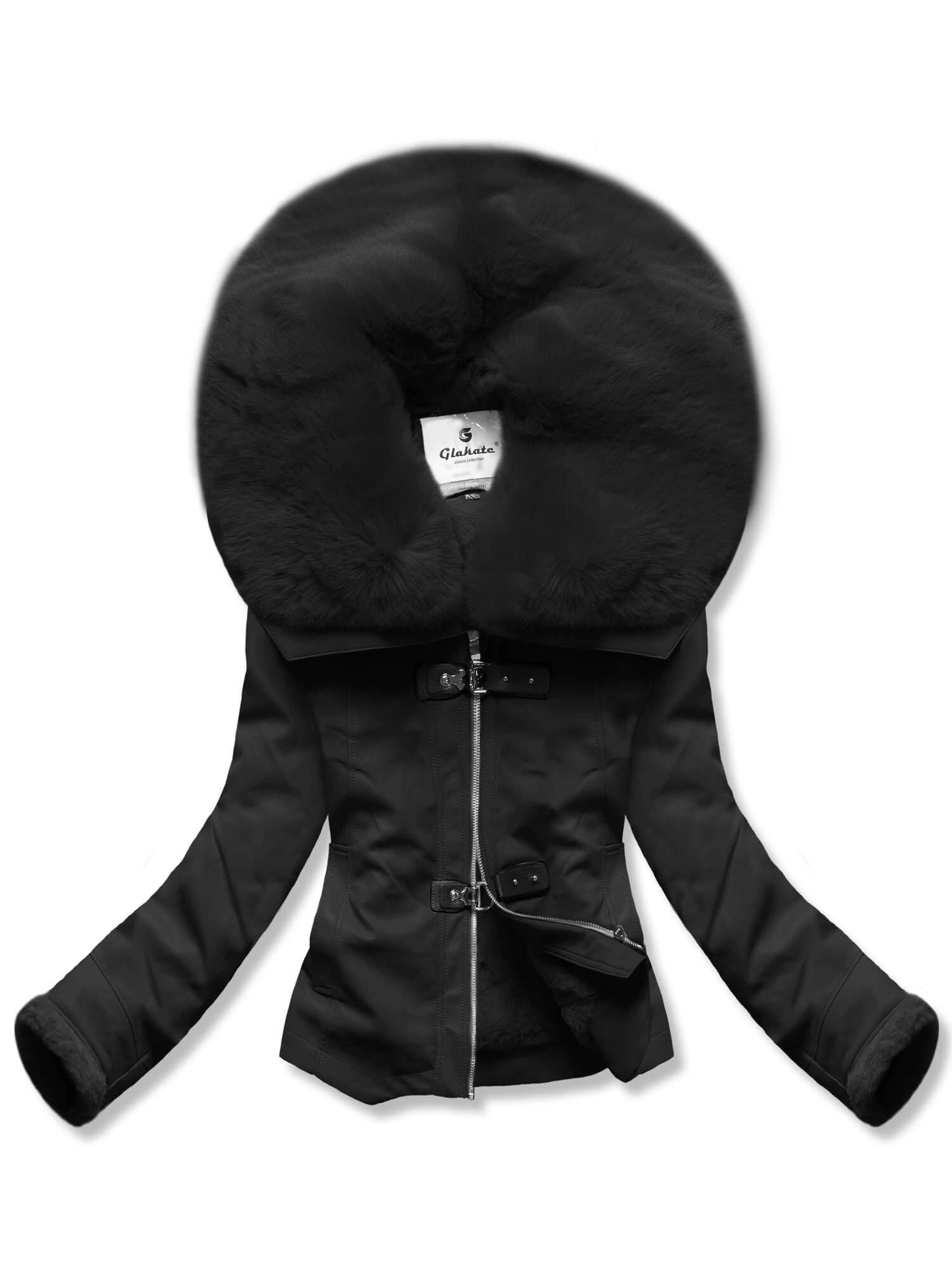 Černá bunda z ekologické kůže s kožešinovým límcem Glakate (LU98091#)