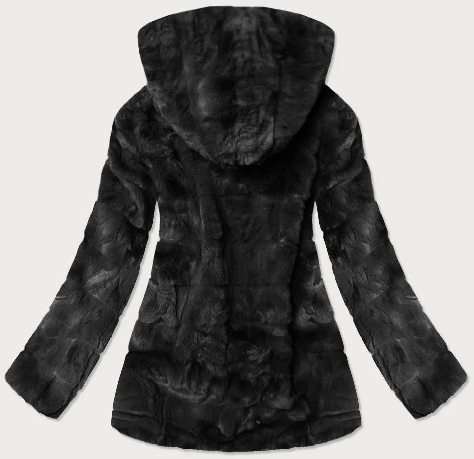 Černá dámská bunda-kožíšek s kapucí (br9742-1)