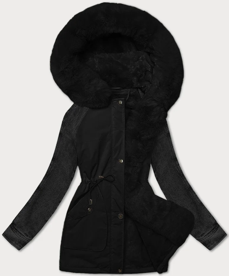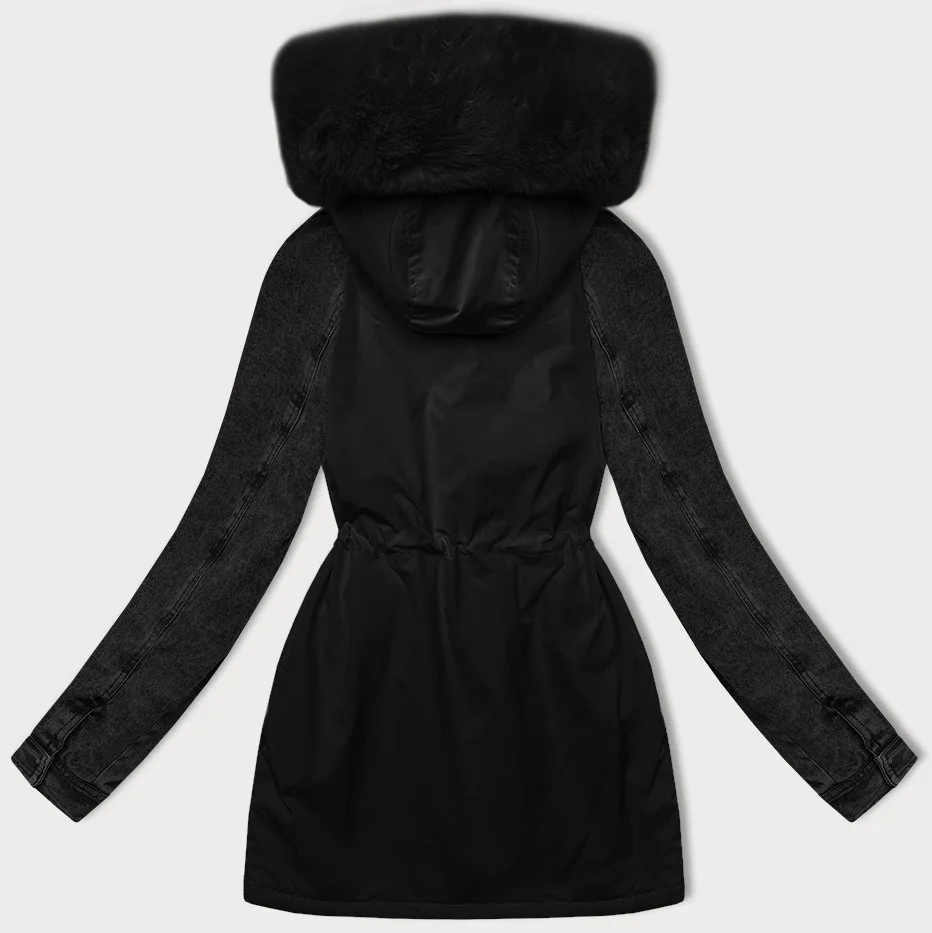 Černá dámská bunda parka s džínovými rukávy Way Mode (WD202301)