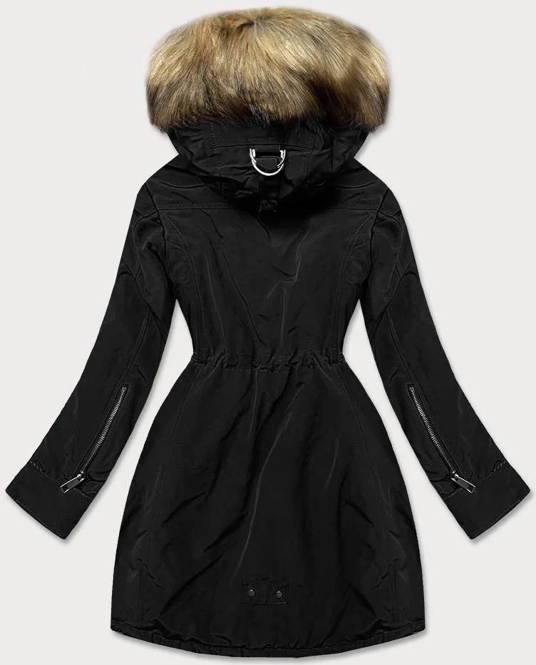 Černá dámská bunda parka s kožešinovou podšívkou (m-21506)