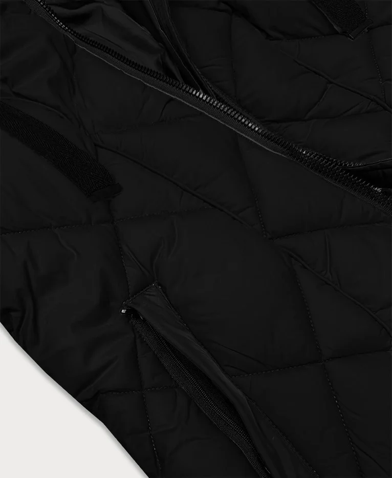 Černá dámská bunda pro přechodné období s kapucí Libland (LD-7735)