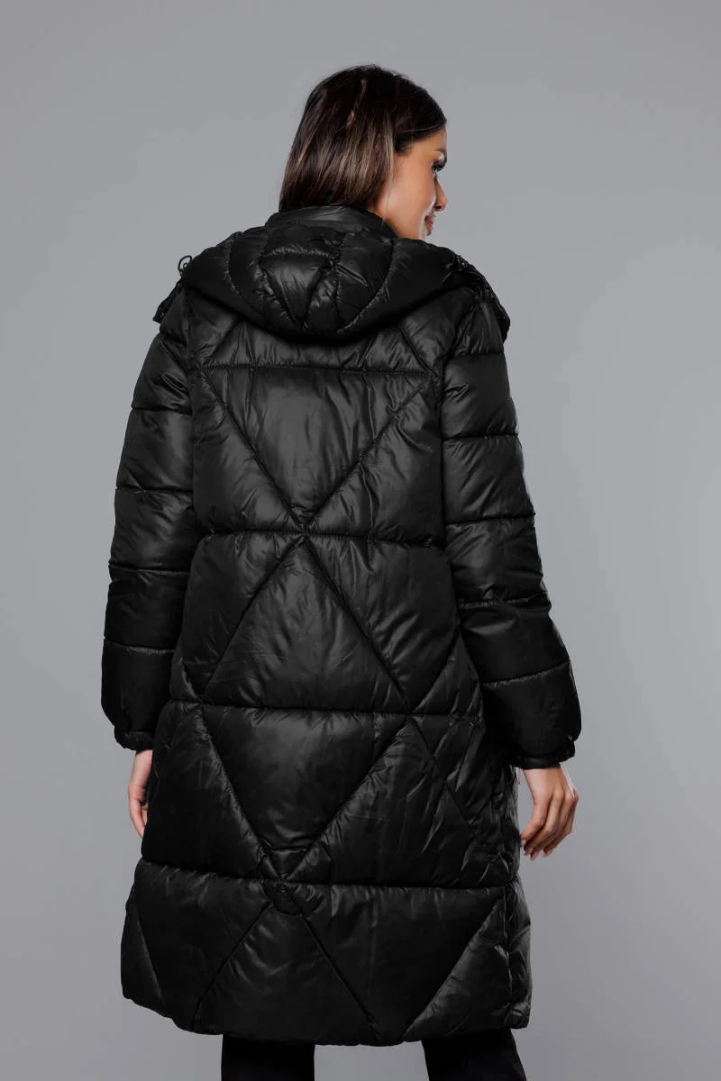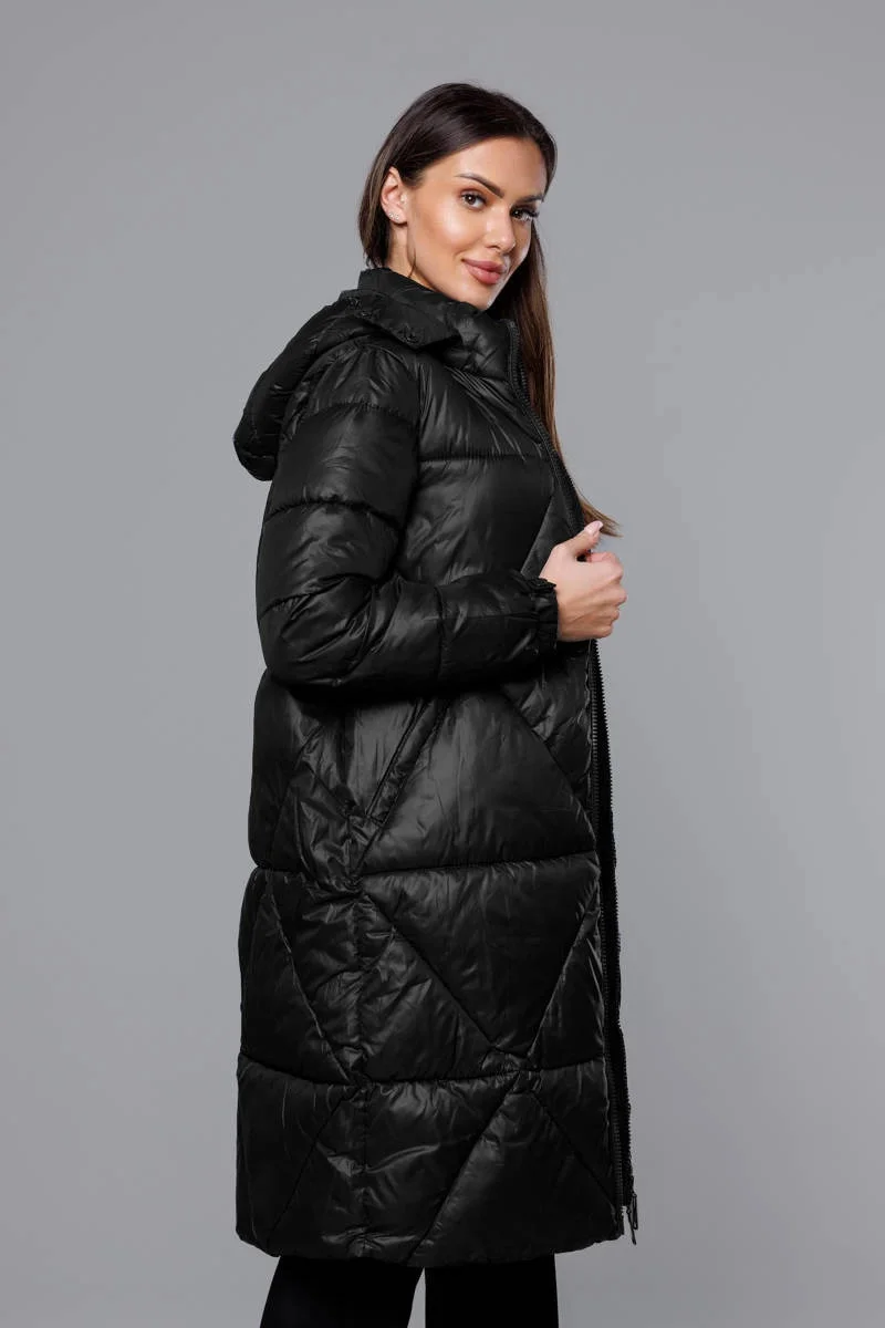 Bunda má jednoduchý střih, je lehce zateplená syntetickou péřovou výplní, má dvě kapsy a zapíná se dvoustranným zipem. Kapuci je možné odepnout. Model má délku do poloviny stehen.