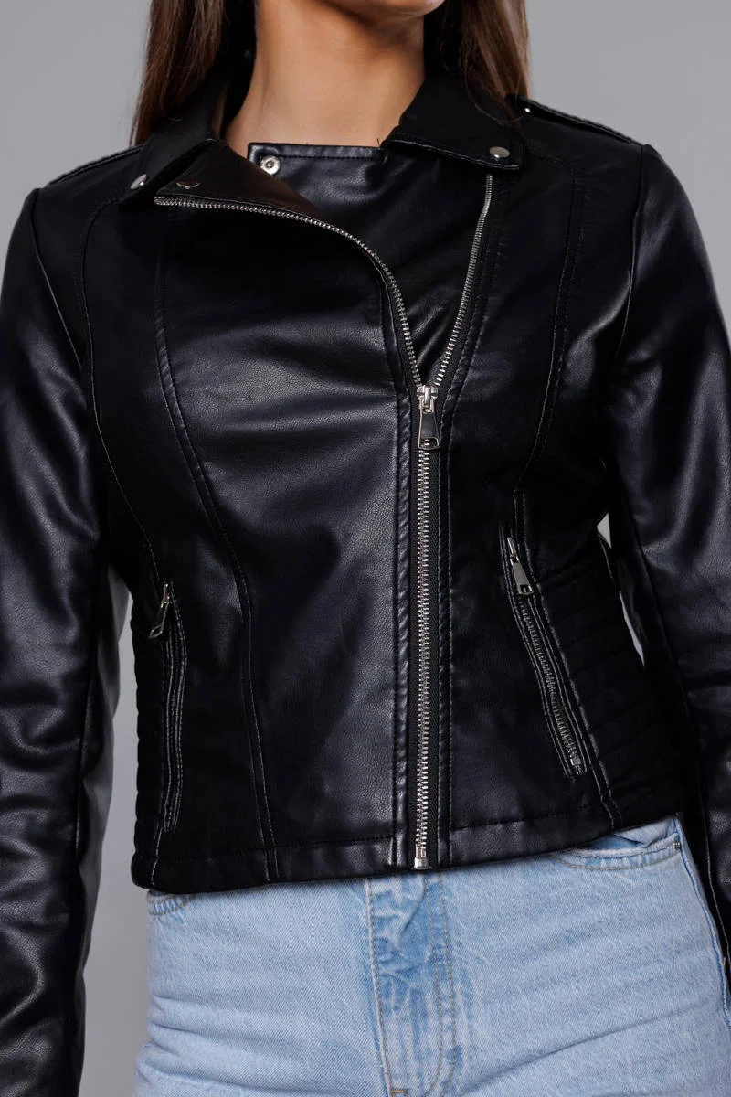 Černá dámská bunda ramoneska s límcem model 18059282 - J.STYLE