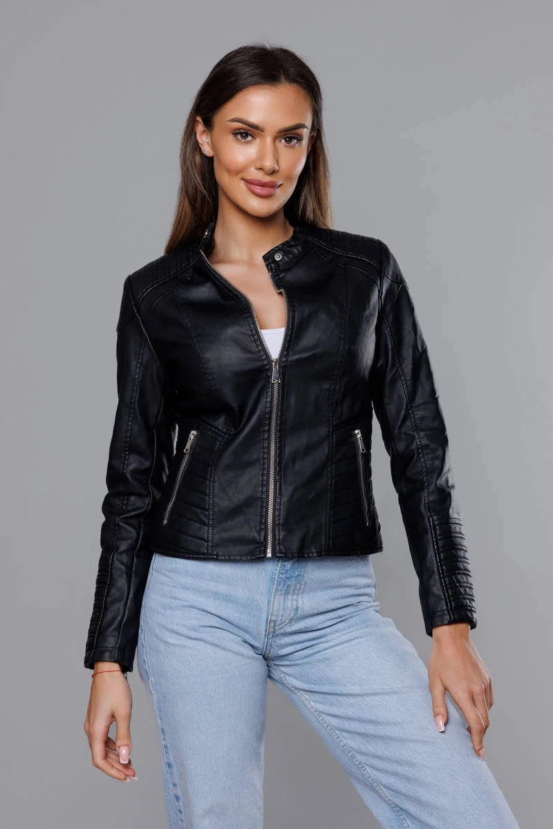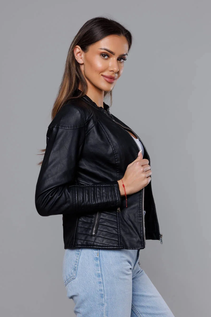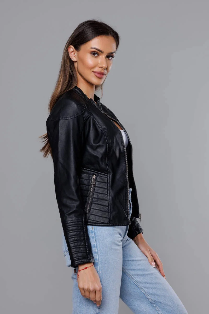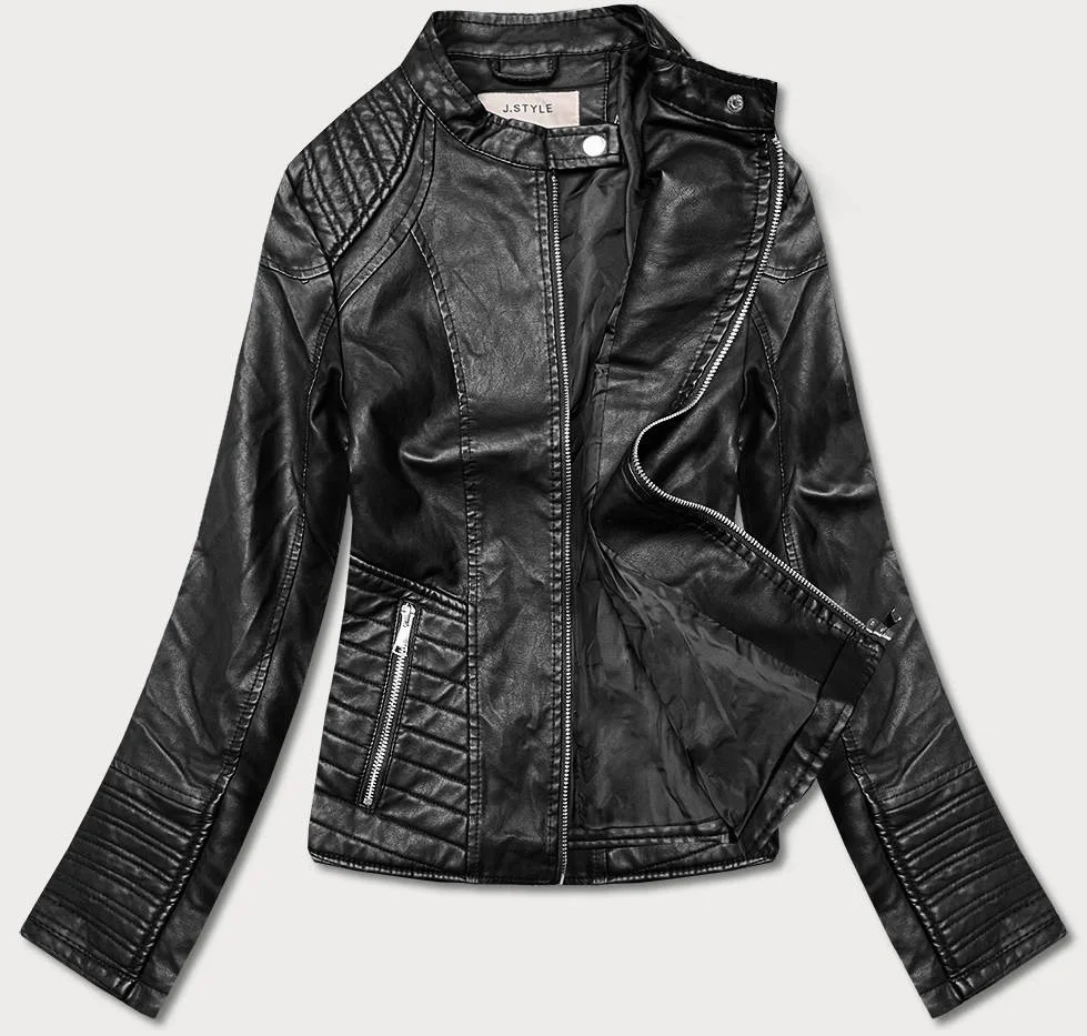 Černá dámská bunda ramoneska se stojáčkem (11Z8029)