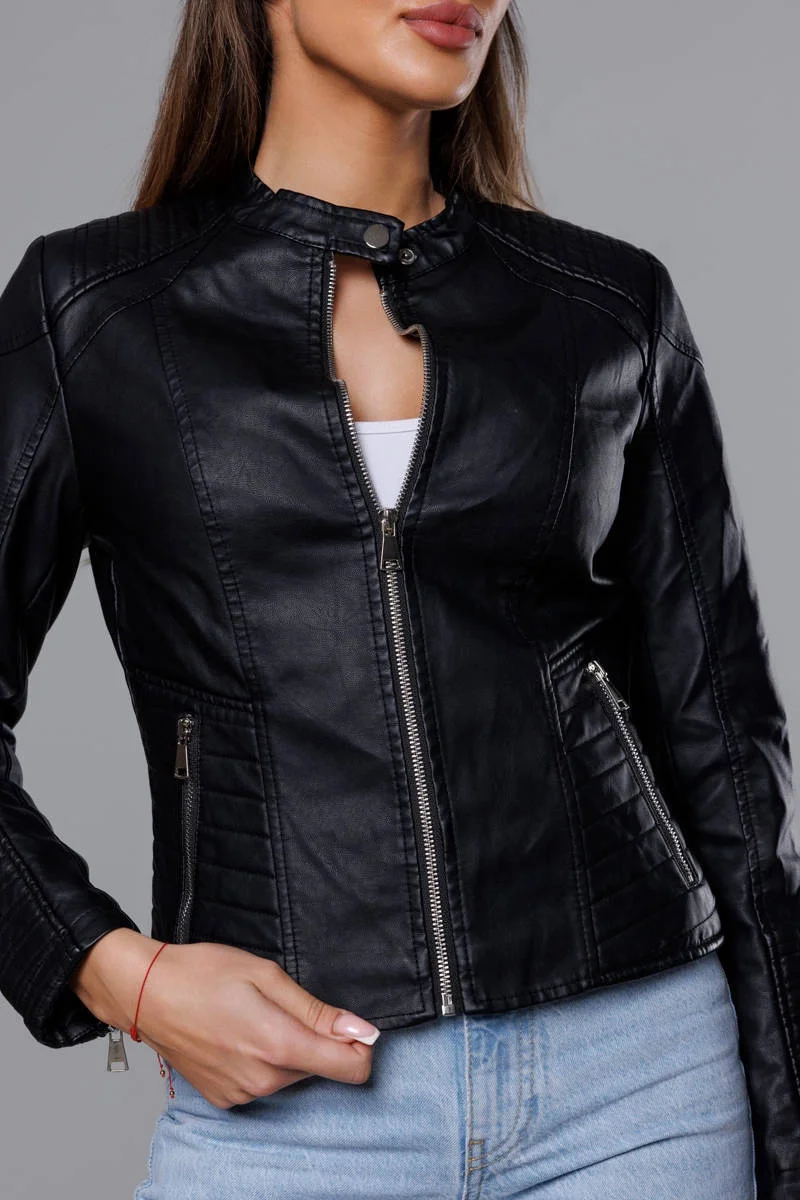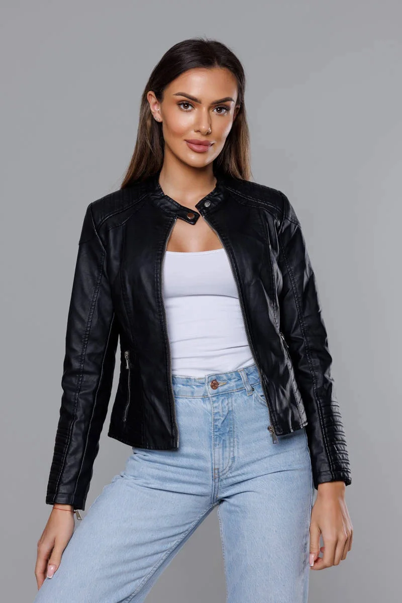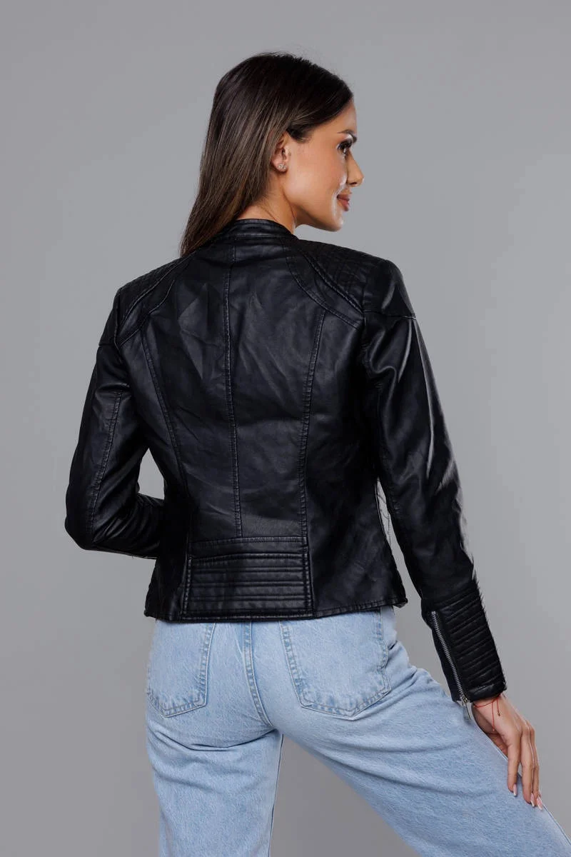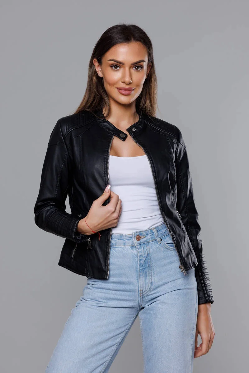 Černá dámská bunda ramoneska se stojáčkem (11Z8029)