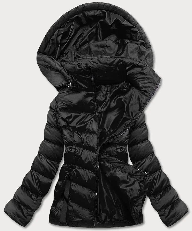 Černá dámská bunda s kapucí pro přechodné období model 17663249 - J.STYLE