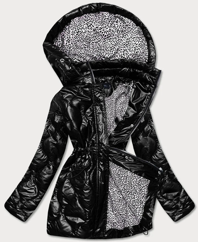Černá dámská bunda s ozdobnou podšívkou (BH2182)