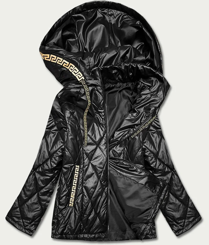 Černá dámská bunda s ozdobným lemováním (B8097-1)