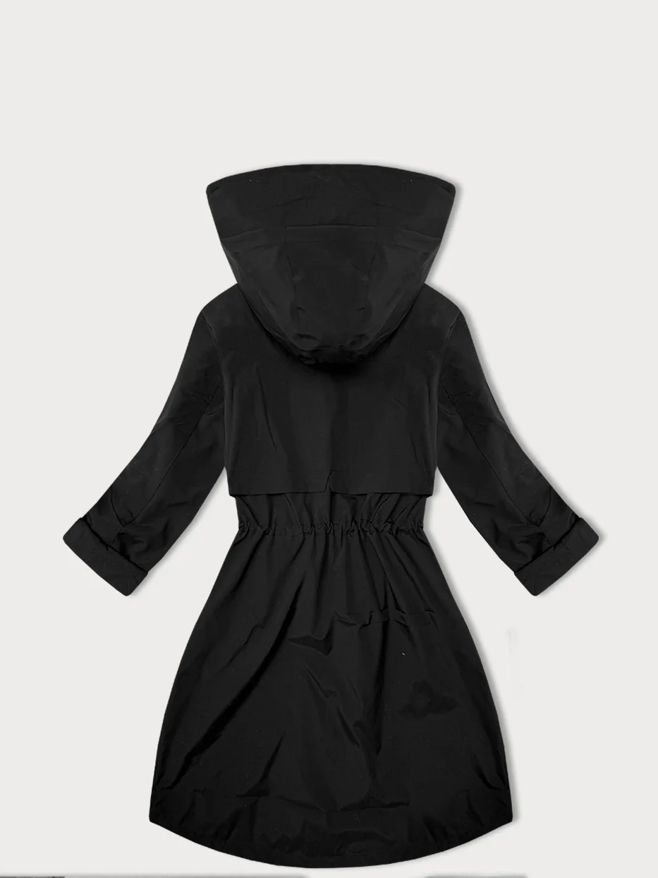 Bunda má jednoduchý střih, má stojáček, dvě kapsy se zapínáním na patentky a zapíná se zipem a panelem s patentkami. Rukávy je možné ohrnout. V pase modelu je stahující šňůrka. Model má délku nad kolena.