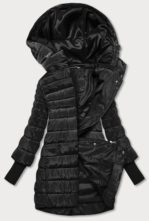 Černá dámská bunda s úpletovými stahovacími lemy (P22-6637/6682-1)