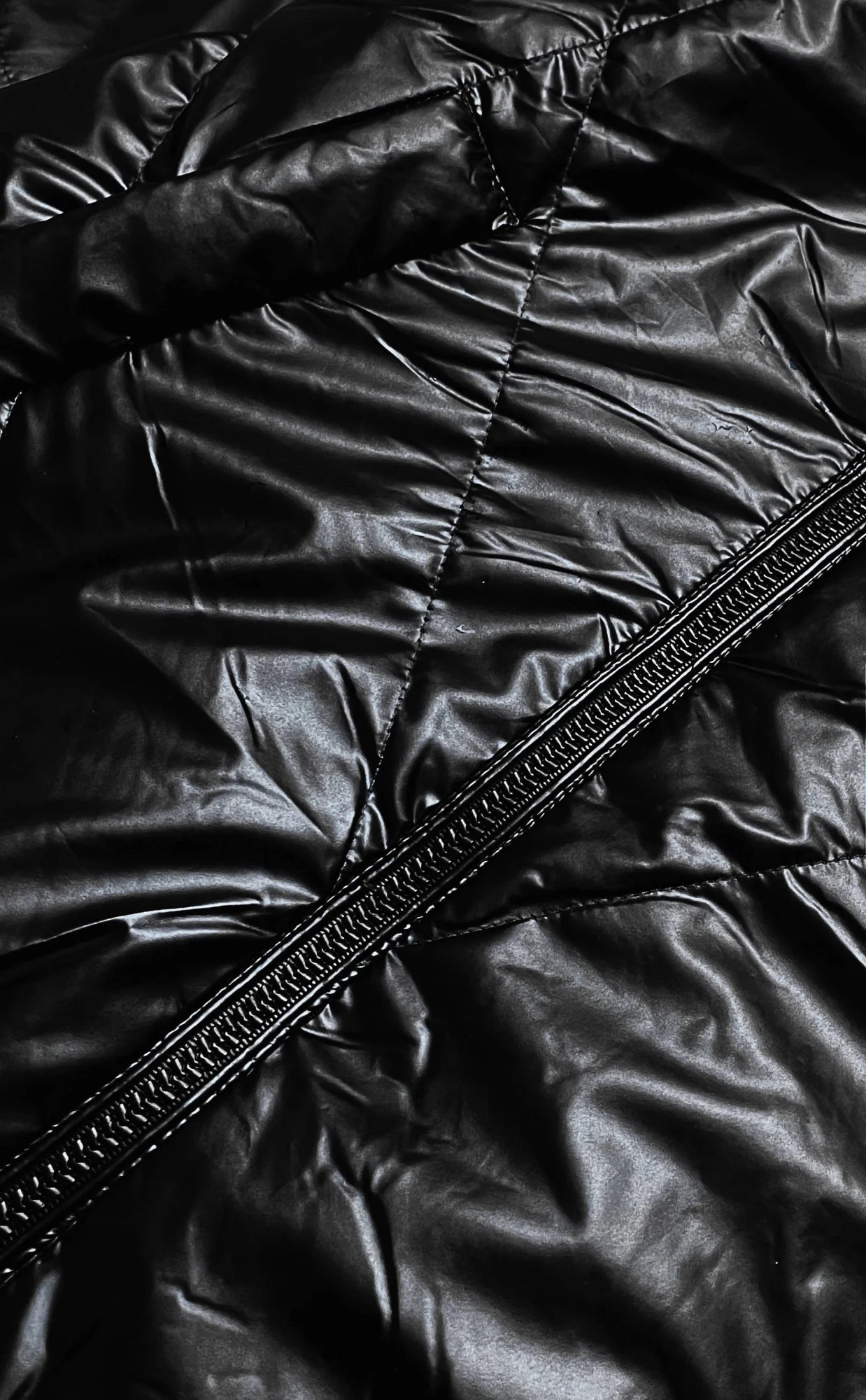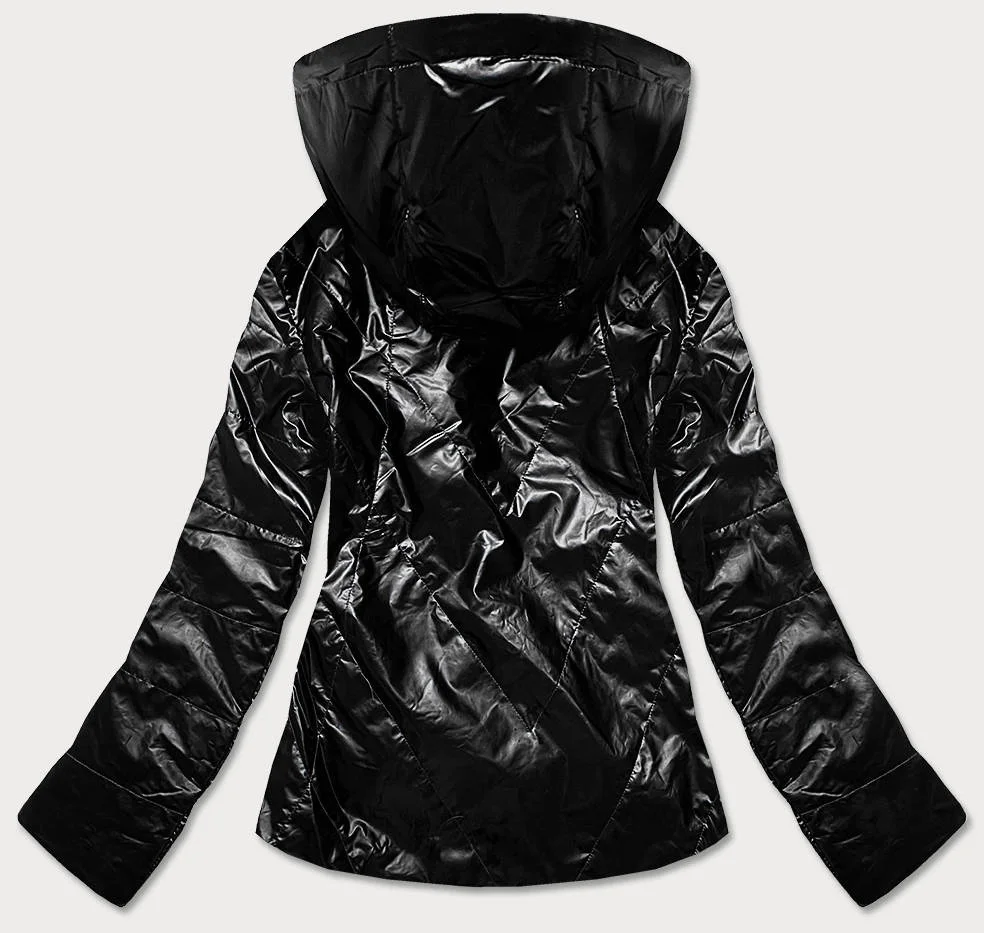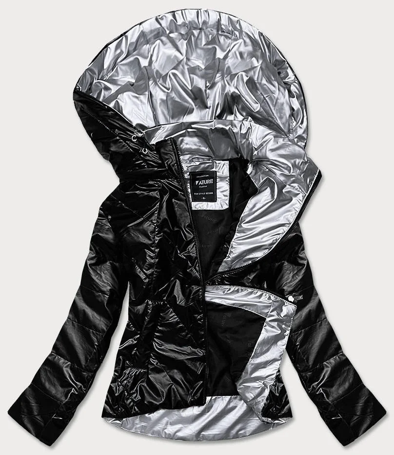 Černá dámská bunda se stříbrnou kapucí (RQW-7008)