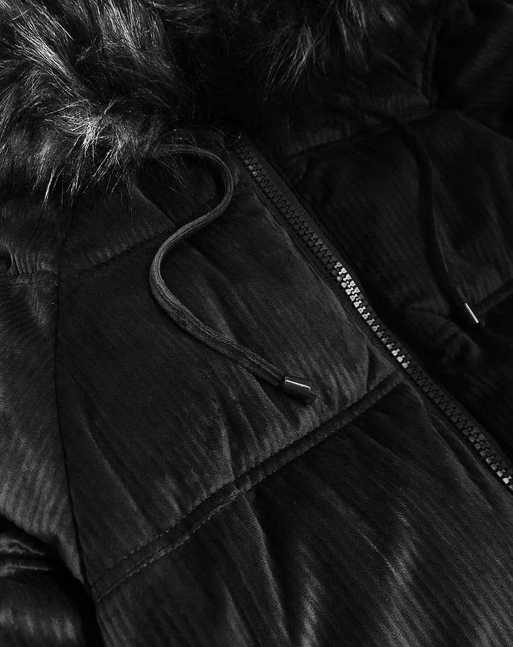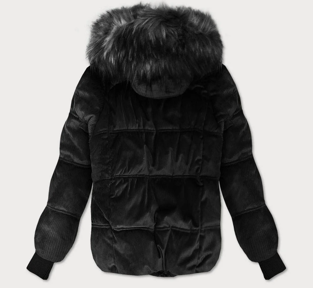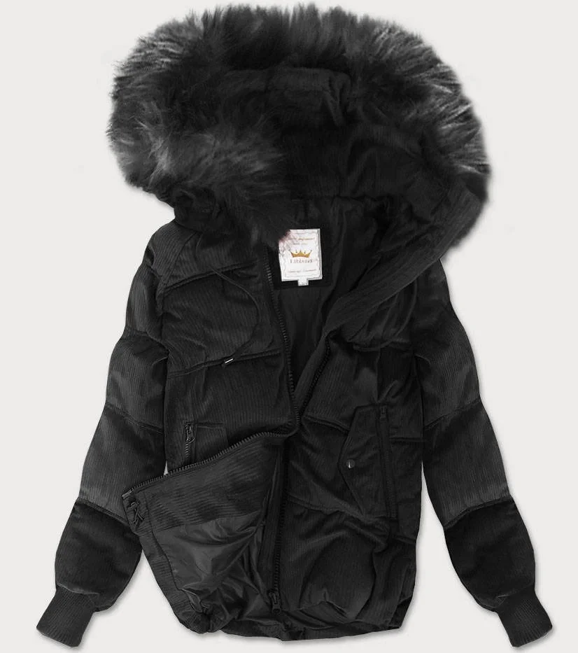 Černá dámská manšestrová bunda s kapucí model 22017377 - Libland