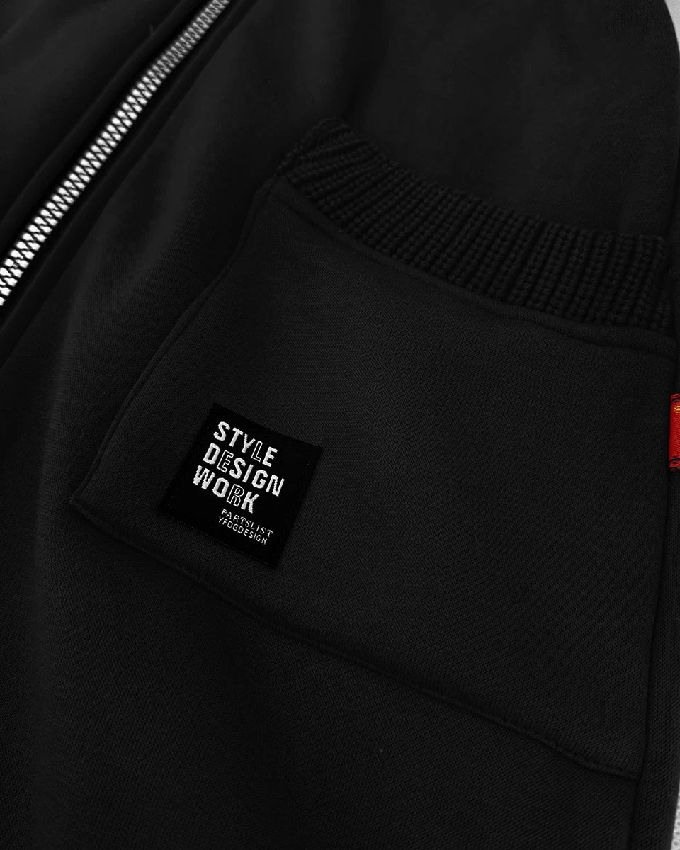Mikina je vypasovaná, uvnitř má příjemný polar (fleece), má dvě kapsy a zapíná se zipem. Rukávy jsou olemované stahovacími lemy. Spodní okraj modelu je asymetrický. Mikina má délku pod boky.