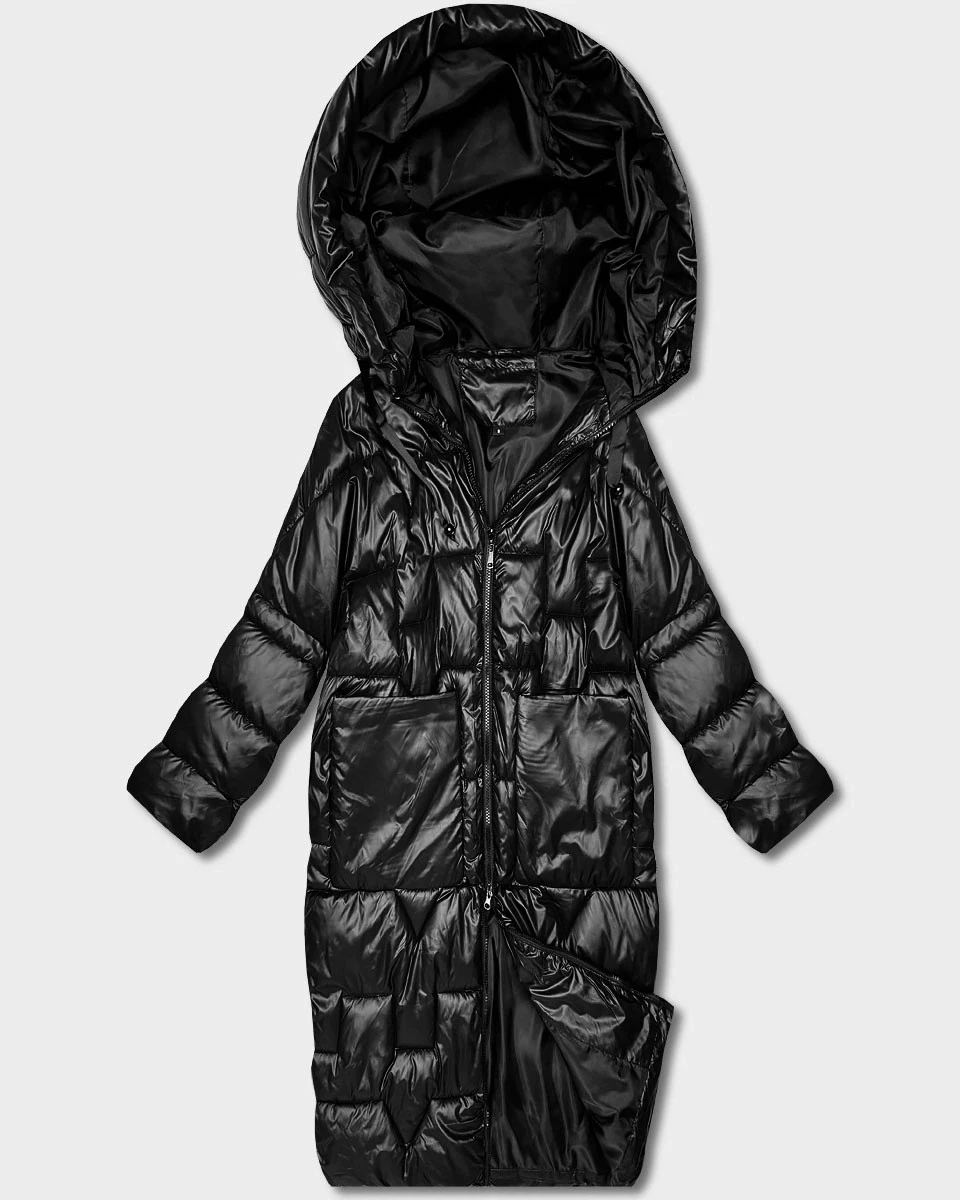 Černá dámská péřová bunda pro přechodné období v délce ke kolenům Goodlookin (T3-2623#-1)