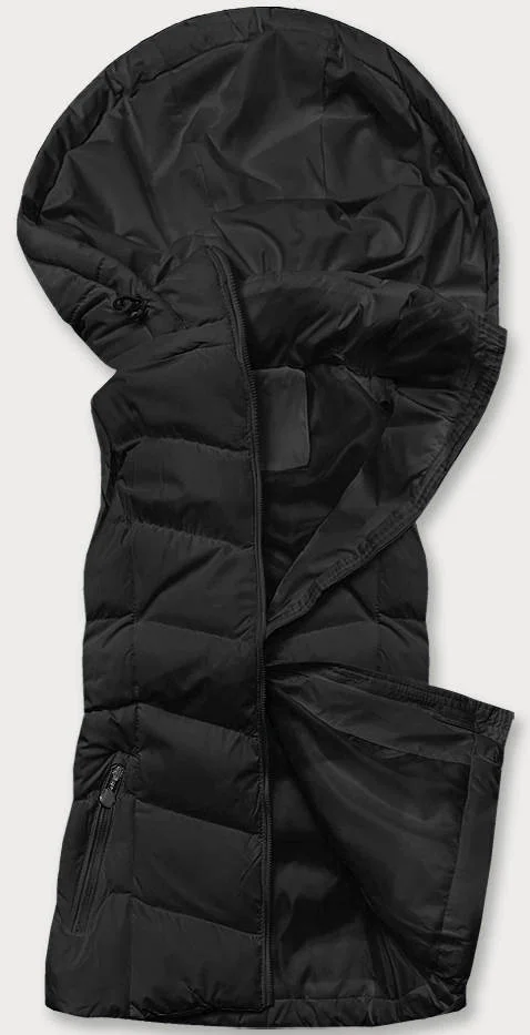 Černá dámská péřová vesta s kapucí (5M720-392)