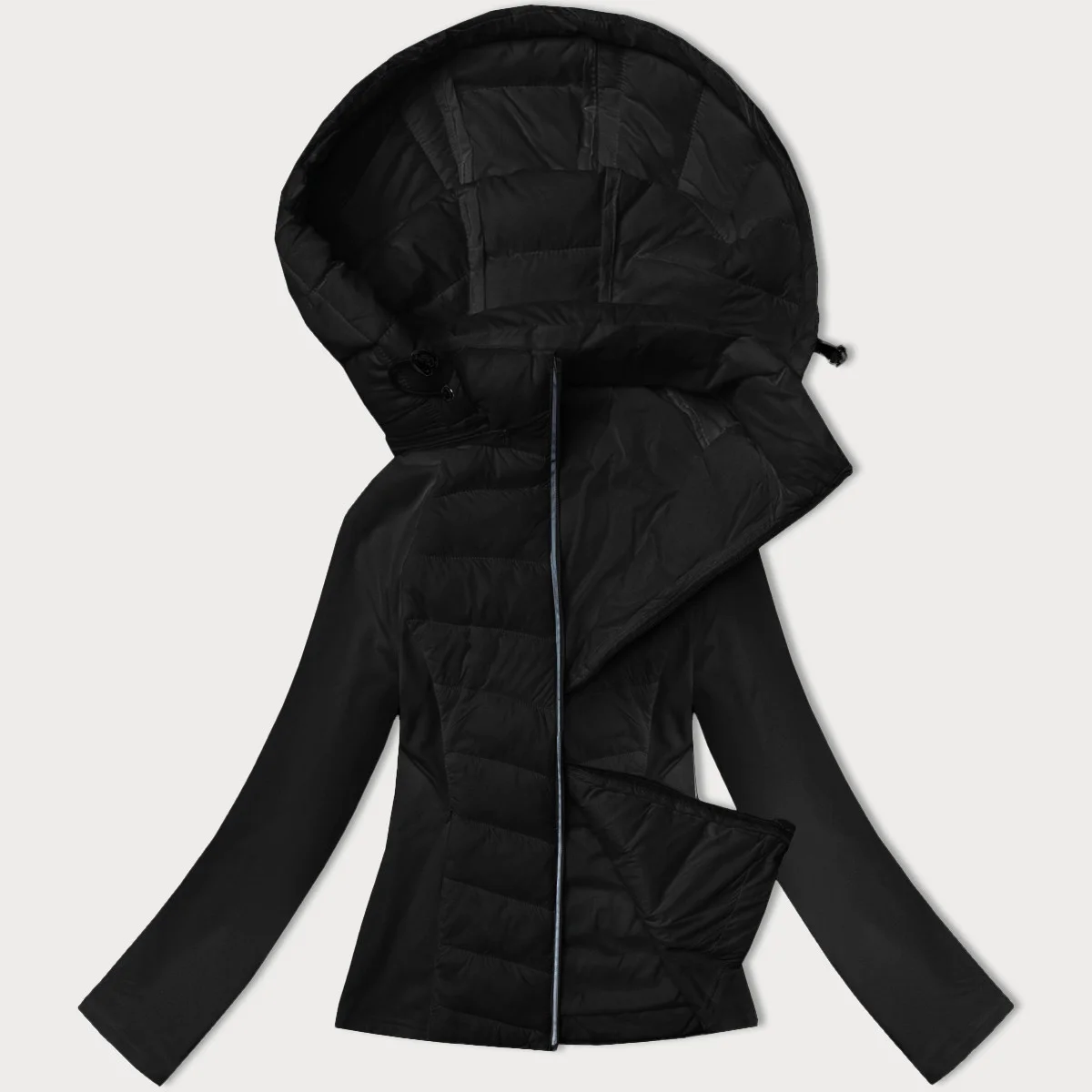 Černá dámská prošívaná bunda z různých spojených materiálů J Style (16M9226-392)