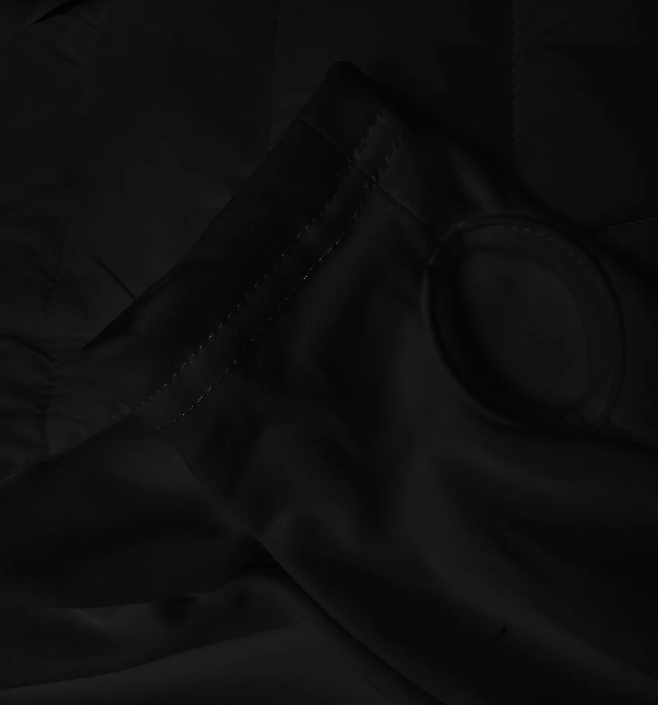 Bunda je v prošívané části lehce zateplená vrstvou syntetické péřové výplně. Model má dvě kapsy se zapínáním na zip a zapíná se zipem. Na koncích rukávů jsou vykrojení pro palec. Bunda má délku k bokům.