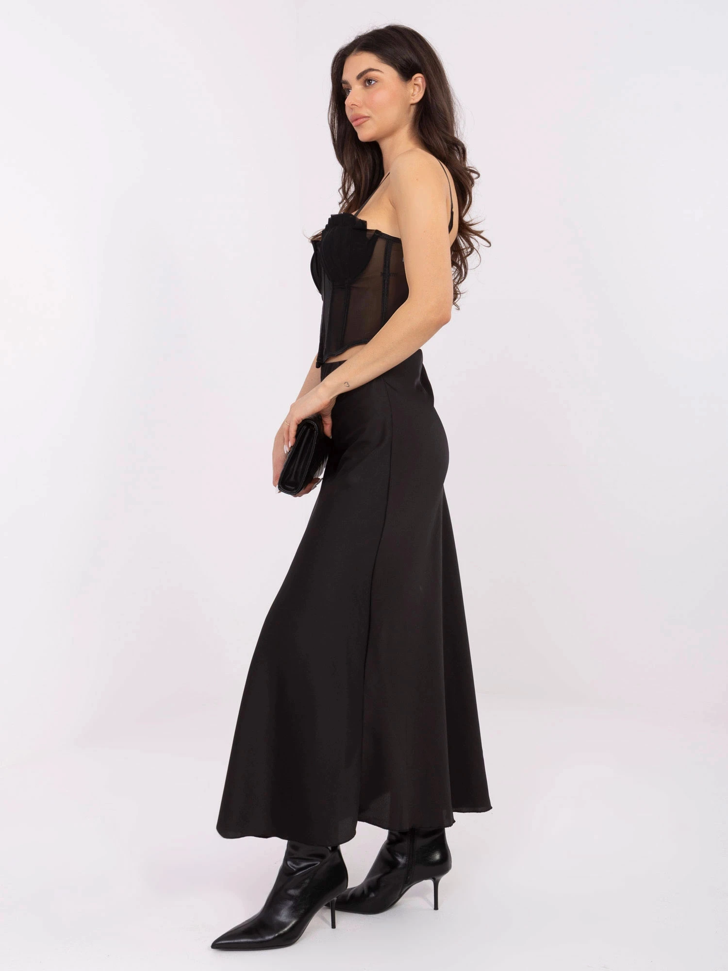 Černá dámská saténová maxi sukně (A2797)