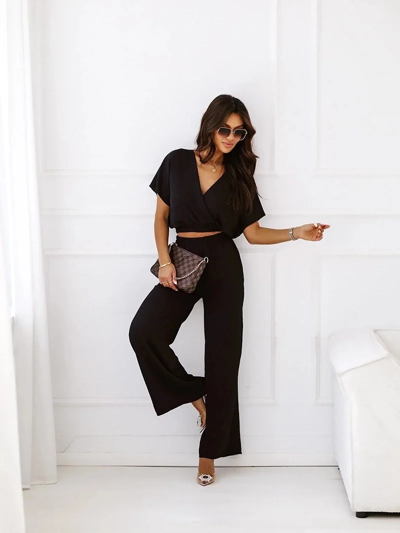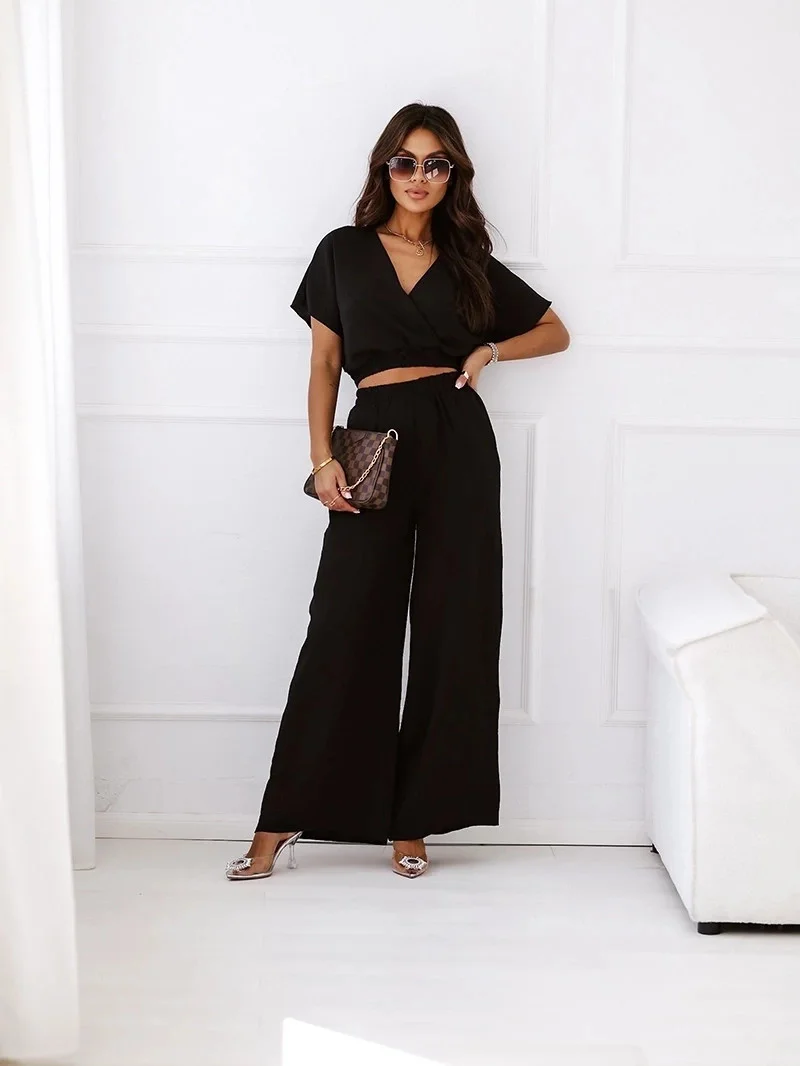 Přidání recenze k Černá dámská souprava top a široké kalhoty model 20070365 - Moon