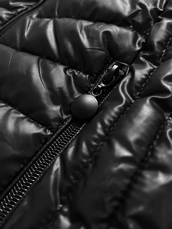Vesta je lehce zateplená syntetickou péřovou výplní, má dvě kapsy a zapíná se zipem. Model lemují pružné lemovky. Vesta má délku k bokům.