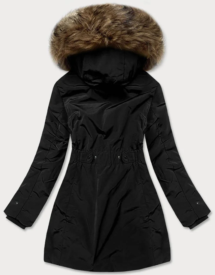 Černá dámská zimní bunda parka s kožešinovou podšívkou (m-21501)