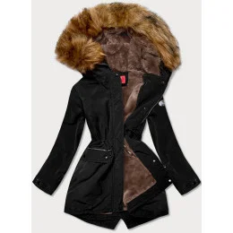 Černá dámská zimní bunda parka s kožešinovou podšívkou (m21312)