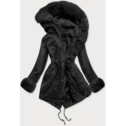 Černá dámská zimní bunda parka s mechovitou kožešinovou podšívkou (br529-101)