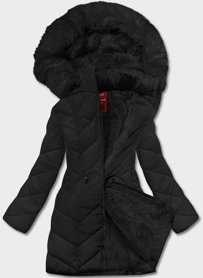 Černá dámská zimní bunda s kapucí (2m-21308)