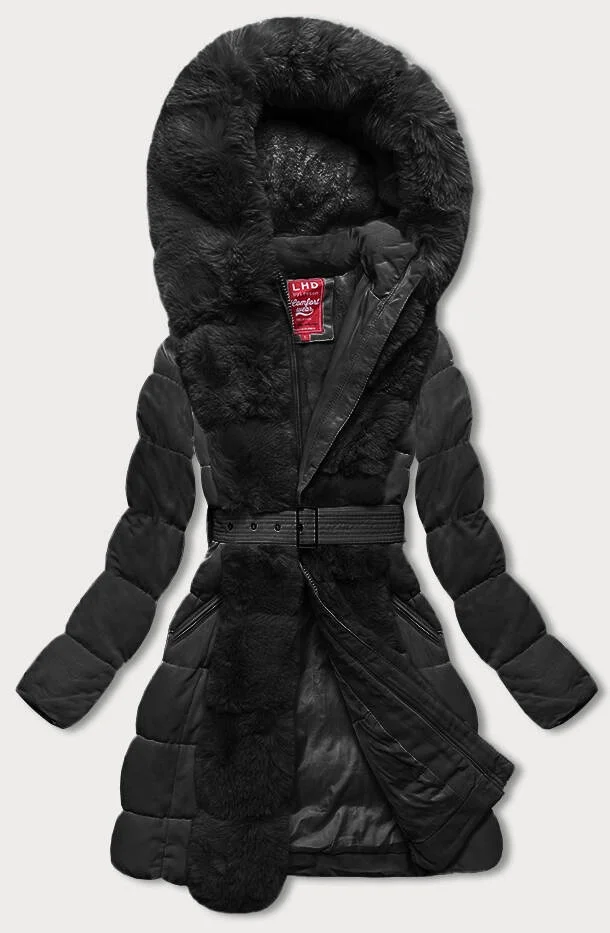 Černá dámská zimní bunda s kožešinou (2M-008)