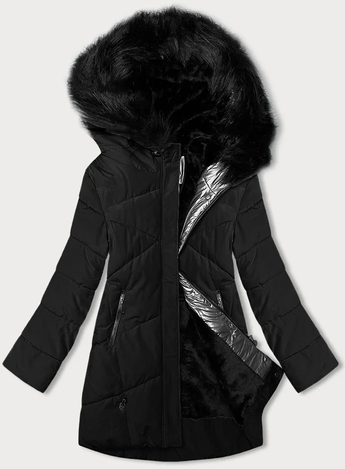 Černá dámská zimní bunda s kožešinou model 21247116 - MELYA MELODY