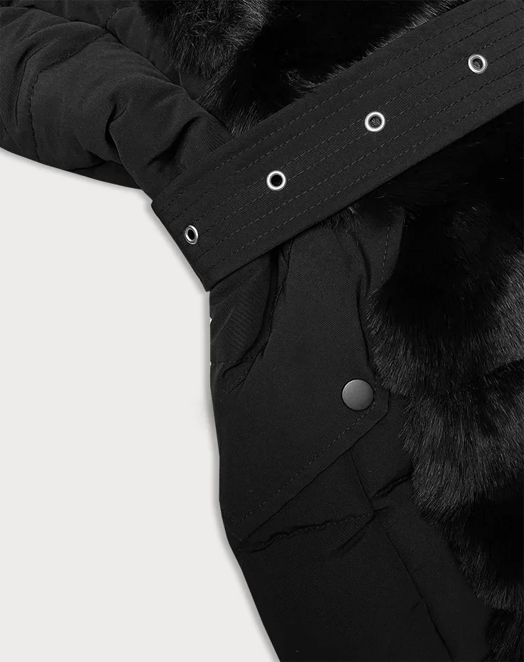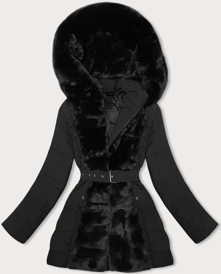 Černá dámská zimní bunda s kožešinou model 21247264 - J.STYLE