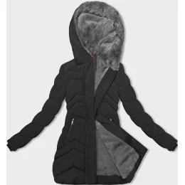 Černá dámská zimní bunda s kožešinovou podšívkou (LHD-23023)