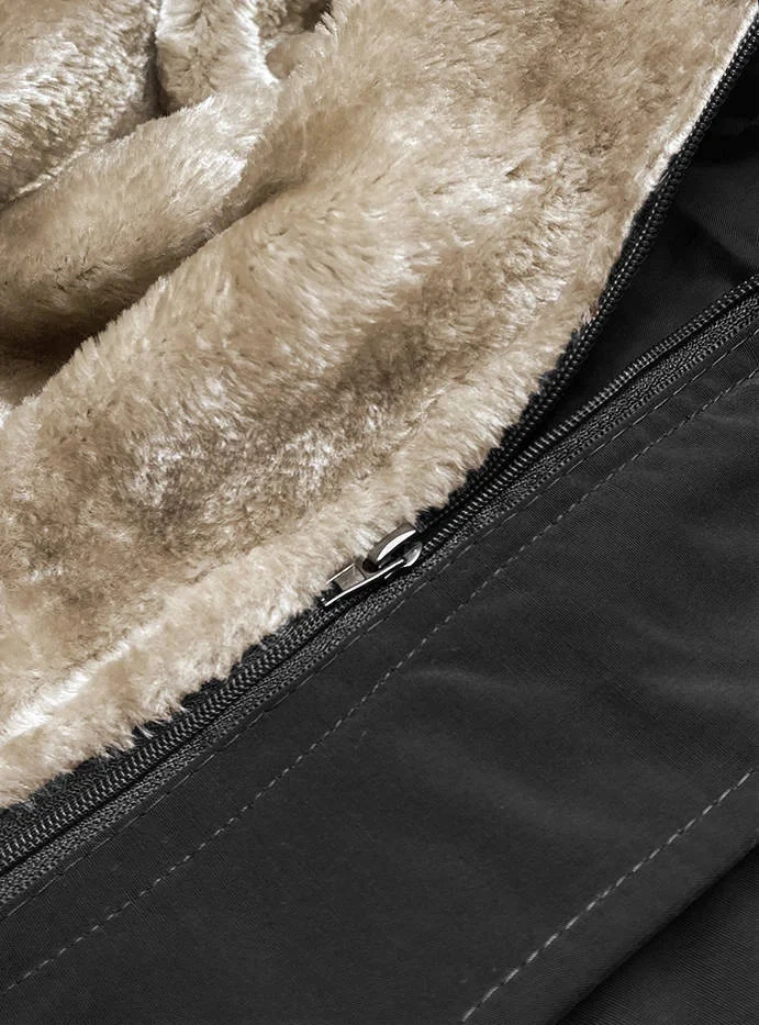 Přidání recenze k Černá dámská zimní bunda s odepínací kožešinovou podšívkou (m-21005)