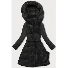 Černá dámská zimní bunda s ozdobnou kožešinou (5M3158-392)