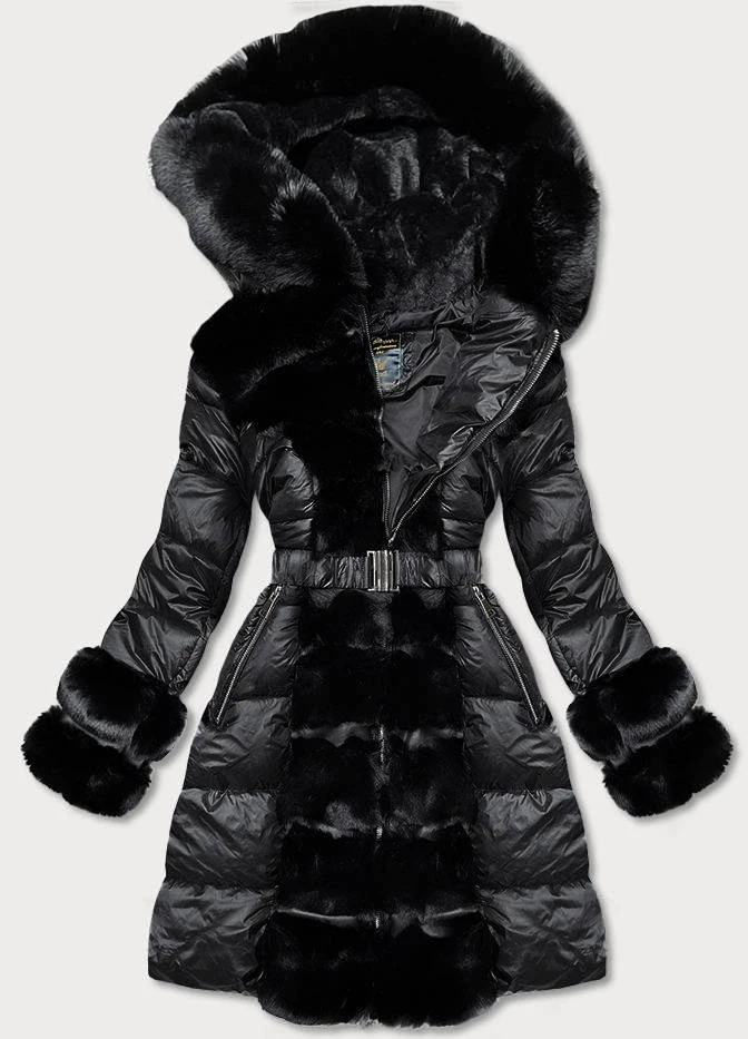 Černá dámská zimní bunda s ozdobnou kožešinou (7729)