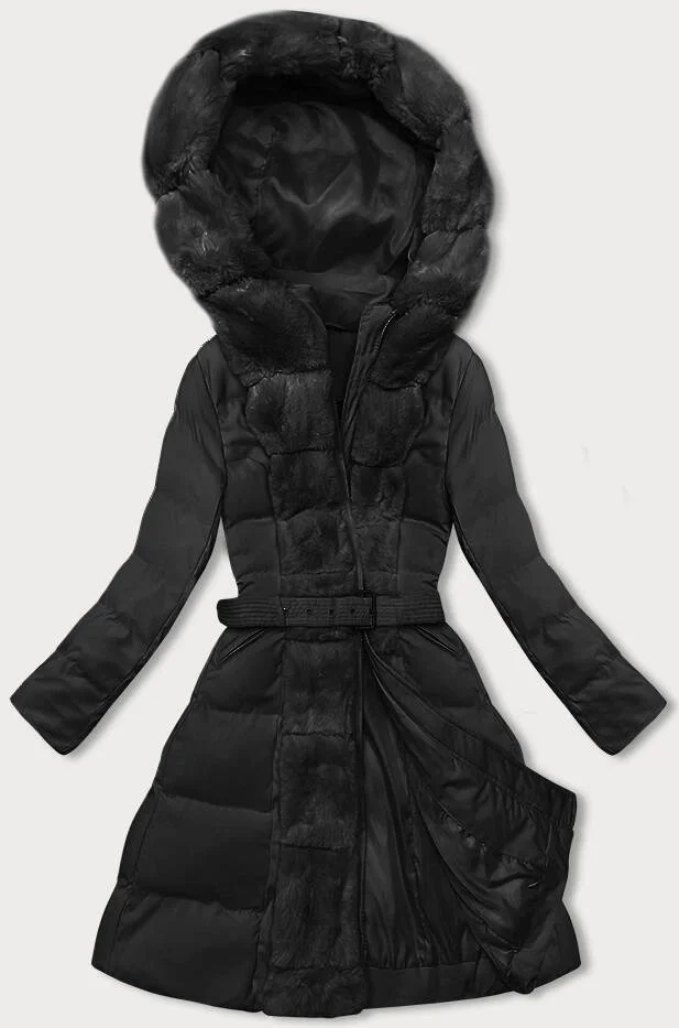 Černá dámská zimní bunda s ozdobnou kožešinou model 21246197 - J.STYLE
