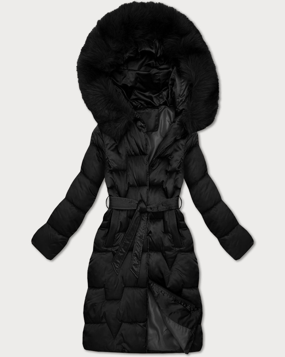 Černá dámská zimní bunda s páskem S'West (B8305-1)