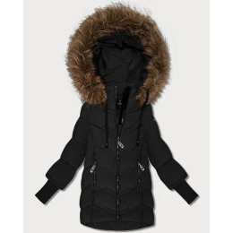 Černá dámská zimní bunda s úpletovými stahovacími lemy Goodlookin (KK60613)