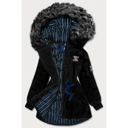 Černá delší dámská zimní bunda s kapucí (m8-757)