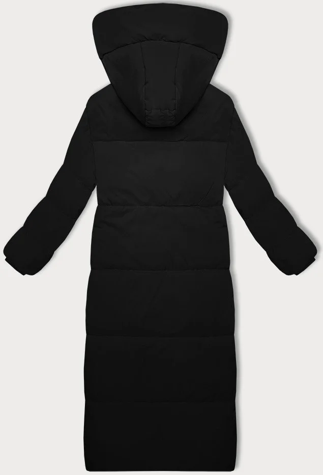 Černá dlouhá bunda-kabát s jednoduchým střihem (WD202229)