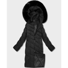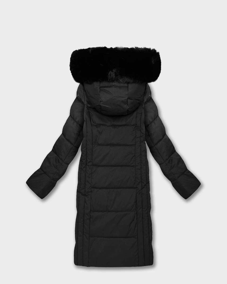 Černá dlouhá dámská bunda s kapucí (7662#-F06)