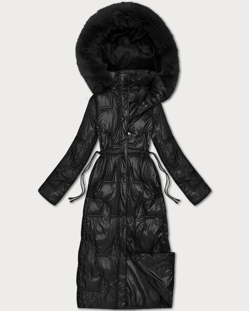 Černá dlouhá dámská prošívaná zimní bunda model 21748226 - HONEY WINTER